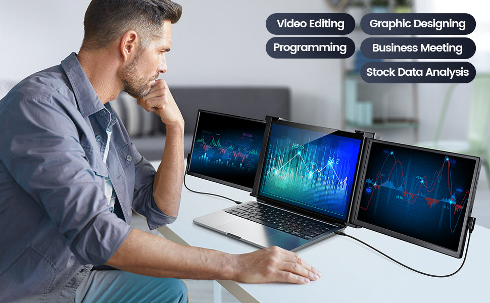 The FQQ 14" triple laptop monitor is designed to be your versatile companion, catering to a wide range of occasions and professional tasks. Whether you're a video editor, programmer, or business professional, this monitor is tailored to meet your needs.