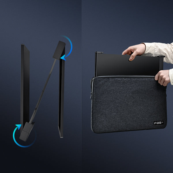 The FQQ triple laptop screen extender features a foldable and stretchable design, making it exceptionally convenient for individuals who work while on the move. With the included carry bag, you can securely store the extender without concerns of damage, enabling you to travel light without compromising on efficiency.